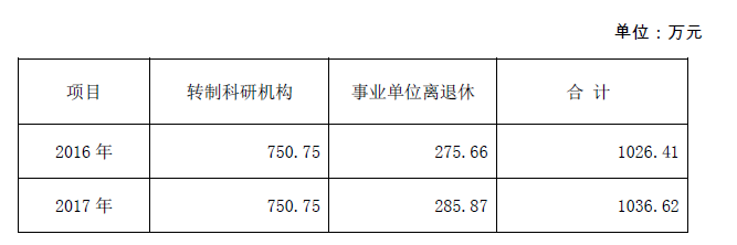 從上表中可以看出轉制科研機構經費保持不變,事業單位離退休增加了10.21萬元。